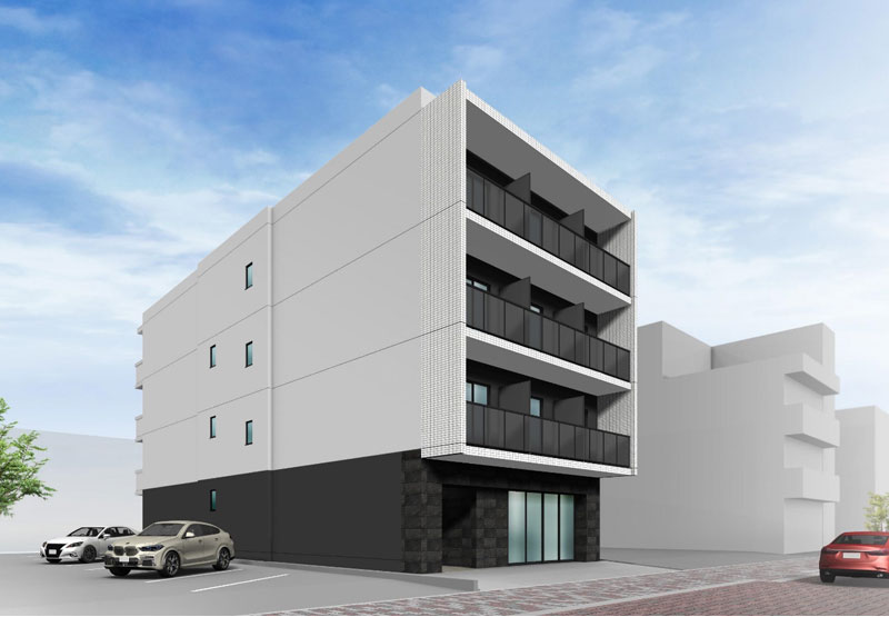 | ※令和5年6月完成予定 1K×12戸、1LDK×6戸、テナント×1戸 敷地内駐車場8台 |
